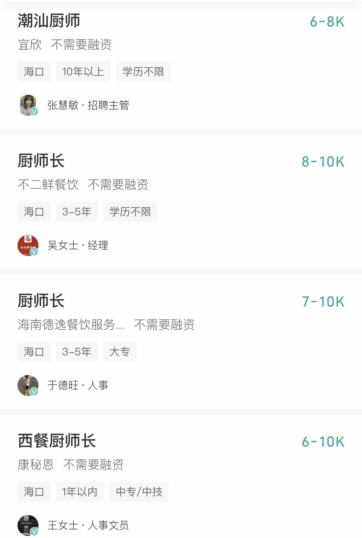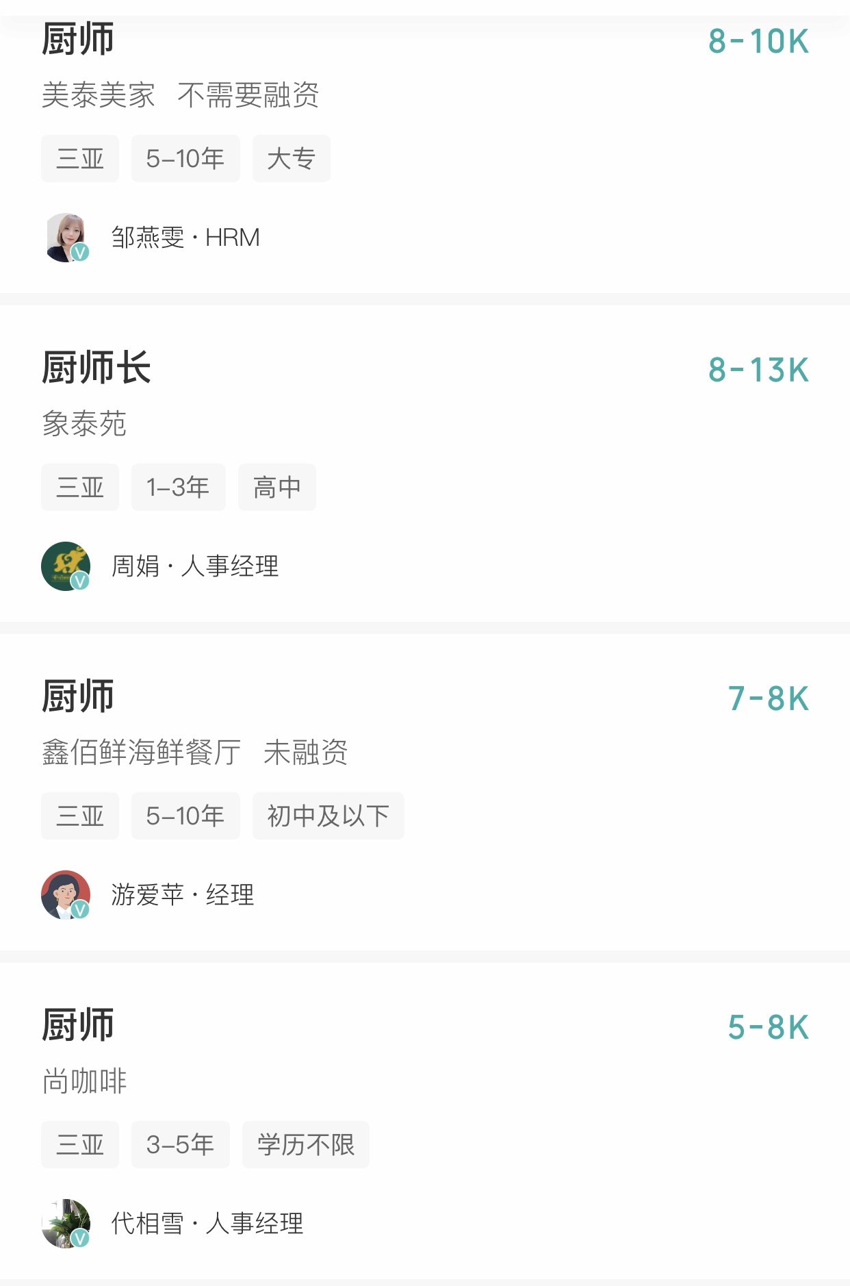 关键词:中餐厨师、西餐厨师、厨师长、厨师经理
